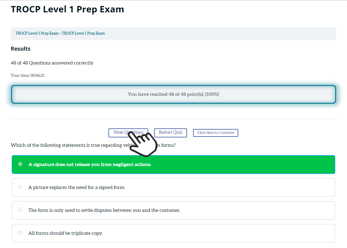 Once the exam has been completed, you can see your results. You can also review any questions you may have missed in order to help you with your next study session.